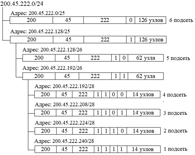 Так как в сети необходимо использовать минимальное количество бит для адресации узлов, то будь узлов меньше у нас изменится маска и диапазон доступных адресов. Допустим вторая сеть имеет всего 3 хоста.